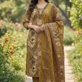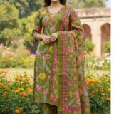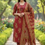 The kurti features a graceful silhouette that pairs effortlessly with the matching cotton pant, offering a relaxed yet elegant fit. The coordinated dupatta adds a touch of traditional charm, making this set a complete and versatile outfit. Ideal for office wear, festive gatherings, and everyday elegance.