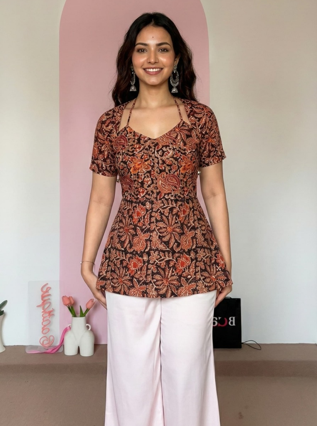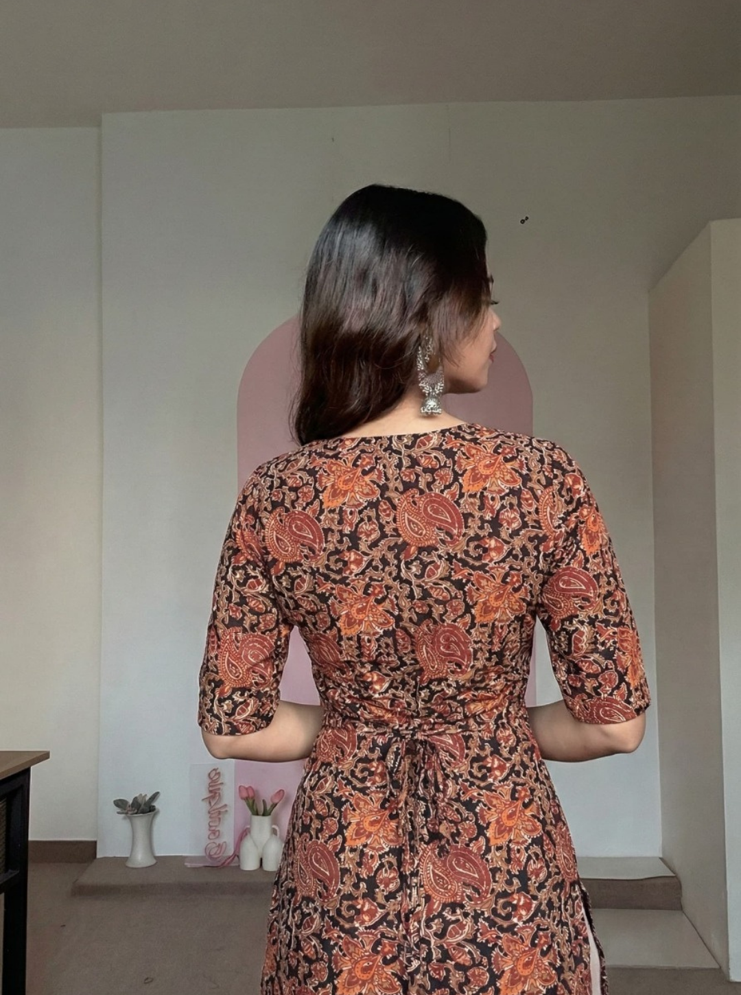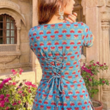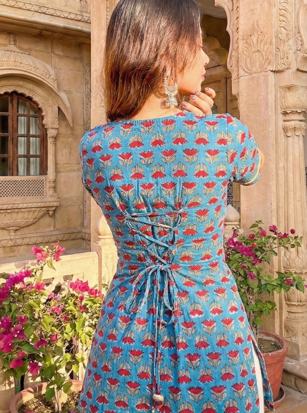 Each Aarvi Corset is individually handcrafted, making every piece unique. Minor variations in print placement or color are natural and highlight the beauty of authentic handblock printing, adding character and charm to the garment.