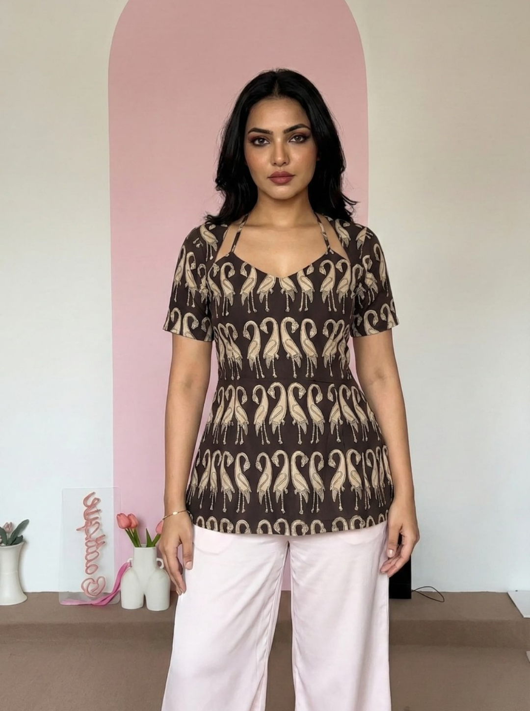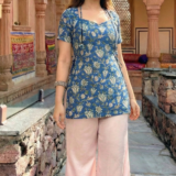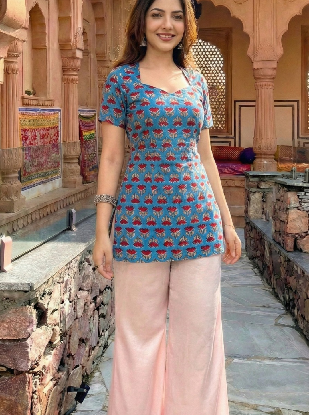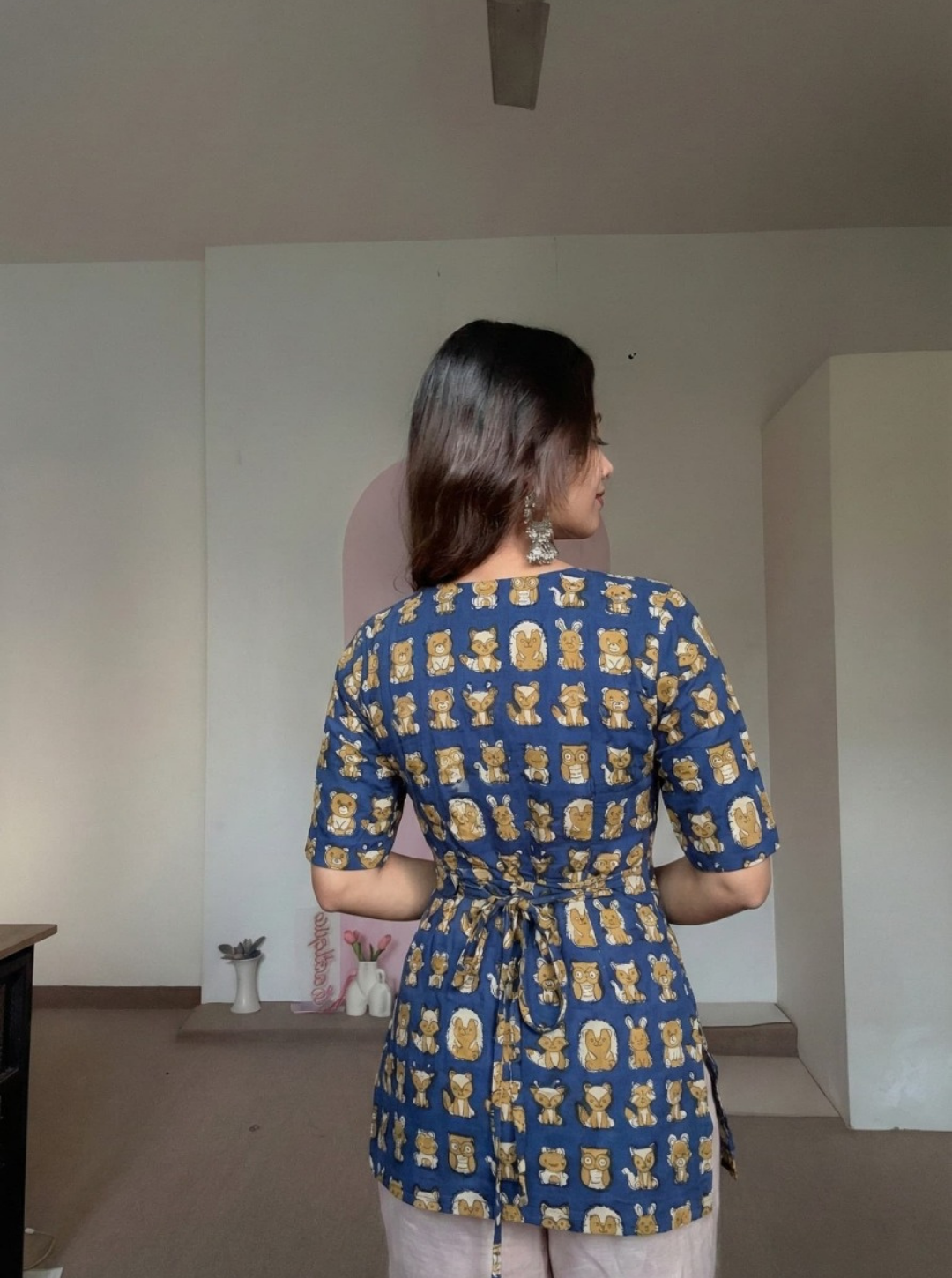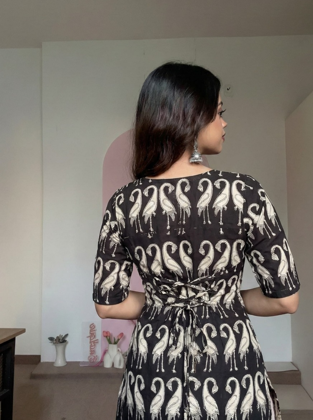 Each Aarvi Corset is individually handcrafted, making every piece unique. Minor variations in print placement or color are natural and highlight the beauty of authentic handblock printing, adding character and charm to the garment.
