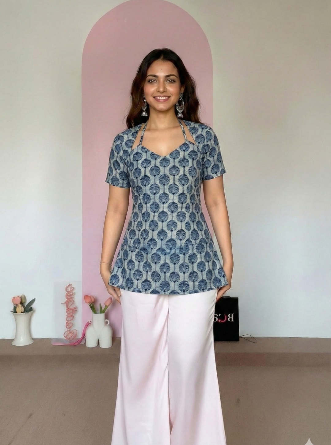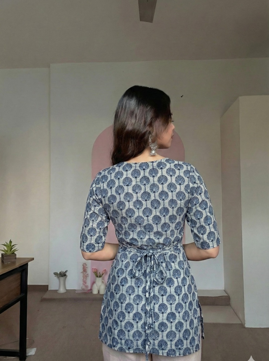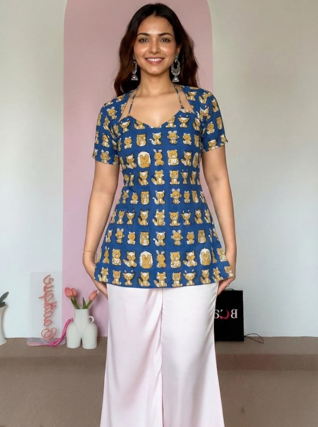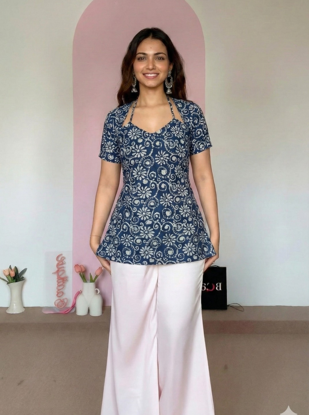 This trending ethnic-fusion design features adjustable back lace-up ties and a neck tie string, offering a flattering and customizable fit for all body types from XS to 7XL. Style it effortlessly with skirts, palazzos, pants, or sarees to create elegant Indo-western and fusion ethnic looks.