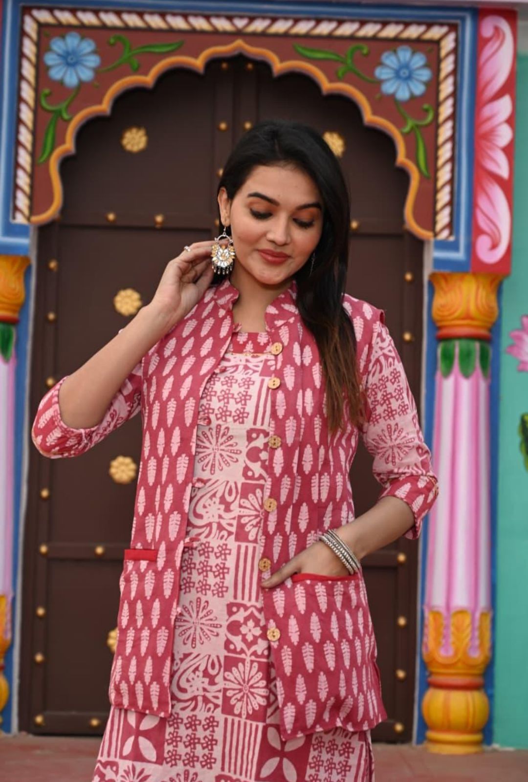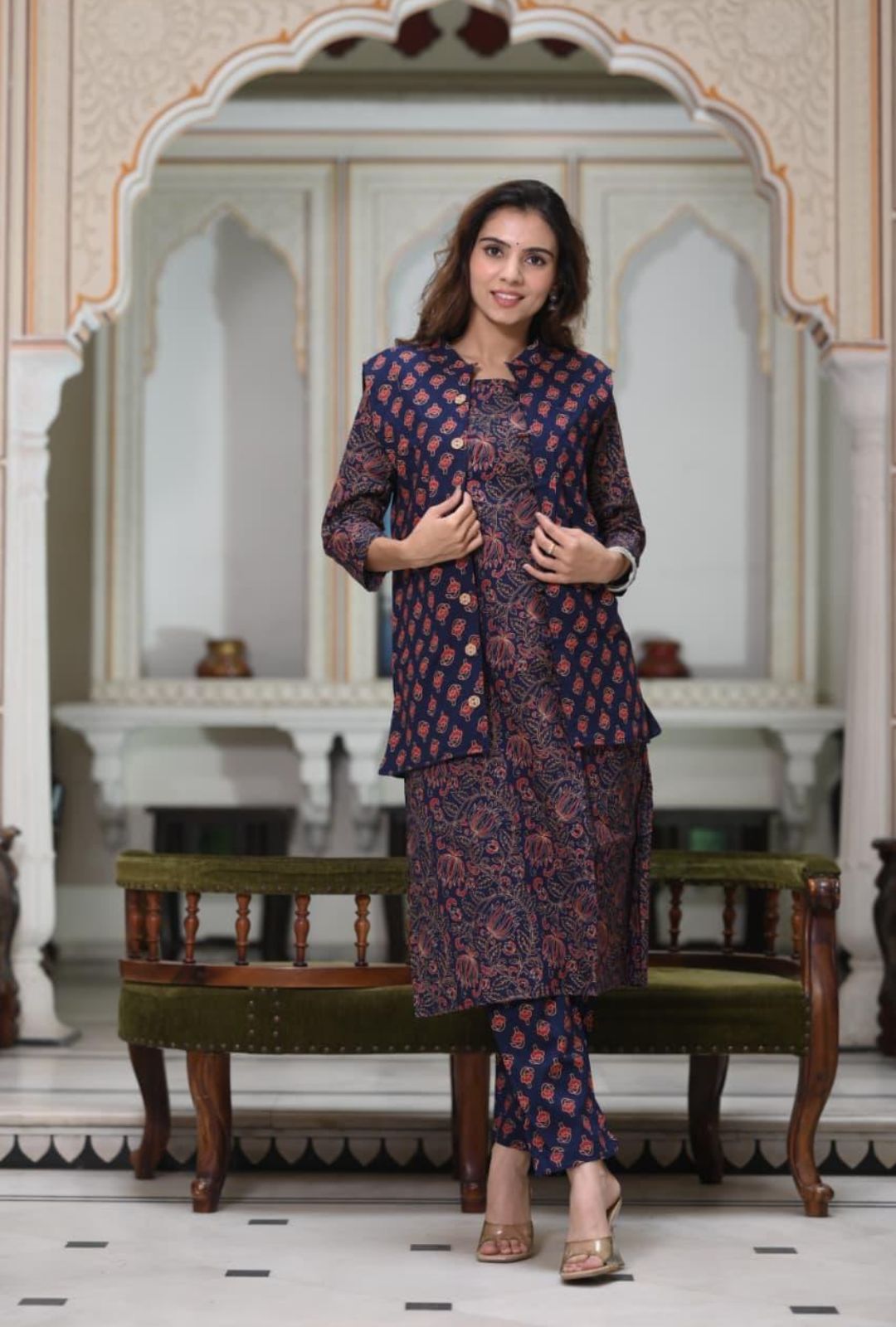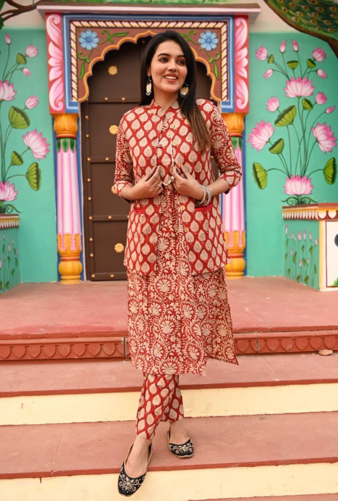 Carefully handcrafted by vedikafashions Handblock, this outfit showcases the richness of traditional Indian craftsmanship. Made using premium-quality cotton fabric and authentic handblock printing, it provides breathable comfort with winter-ready layering—keeping you warm without feeling heavy.