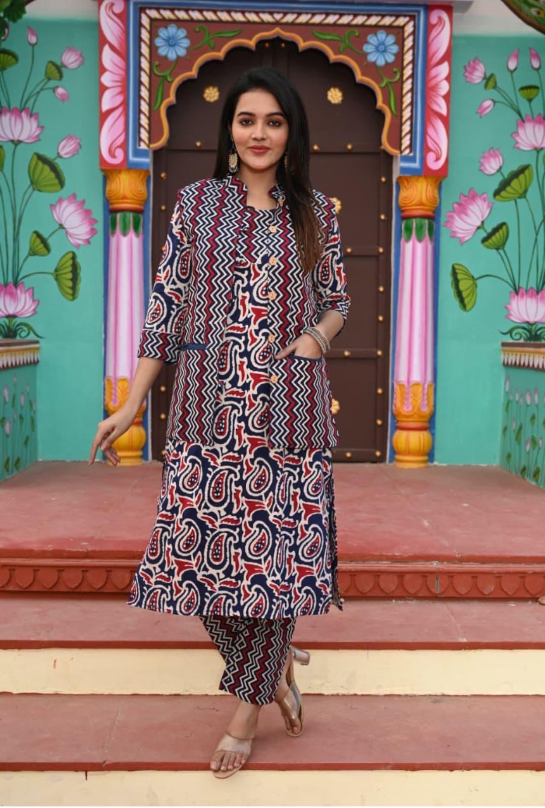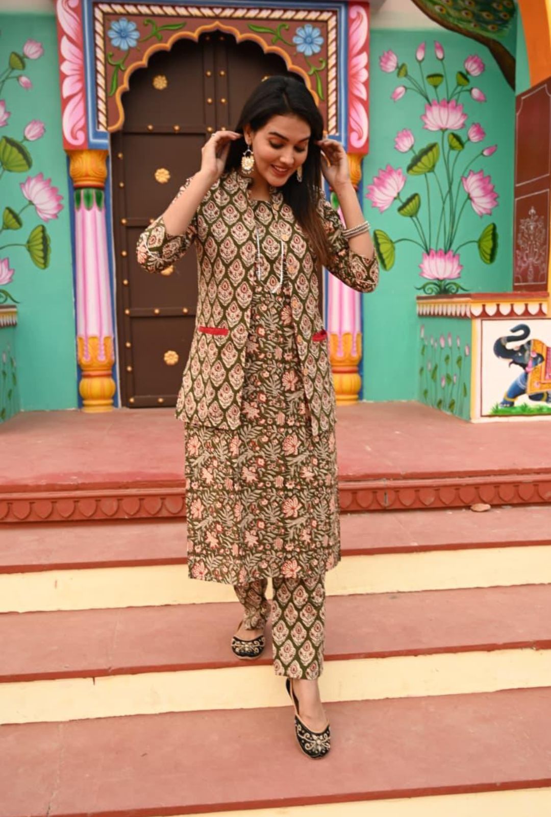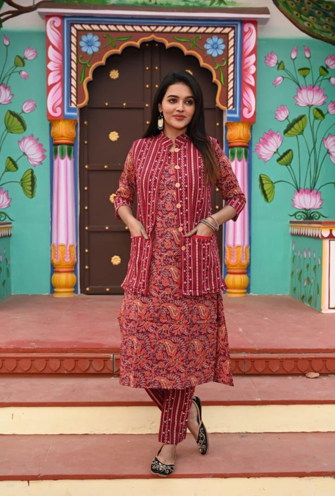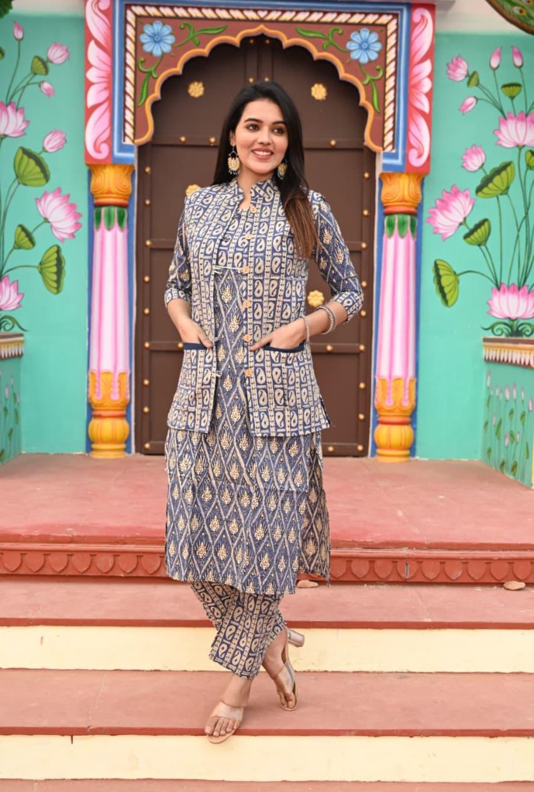 Carefully handcrafted by vedikafashions Handblock, this outfit showcases the richness of traditional Indian craftsmanship. Made using premium-quality cotton fabric and authentic handblock printing, it provides breathable comfort with winter-ready layering—keeping you warm without feeling heavy.