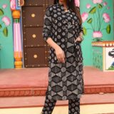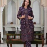 Upgrade your winter wardrobe with this elegant handblock printed kurti pant set, beautifully paired with a soft and cozy cotton jacket. Designed to offer both warmth and effortless style, this ensemble is perfect for daily winter wear while maintaining a graceful ethnic look.